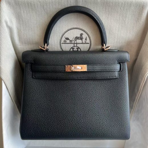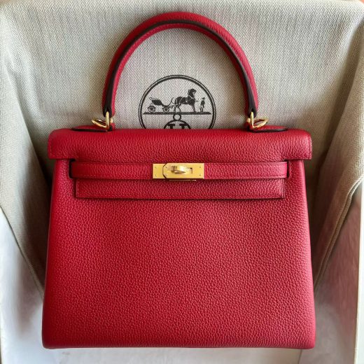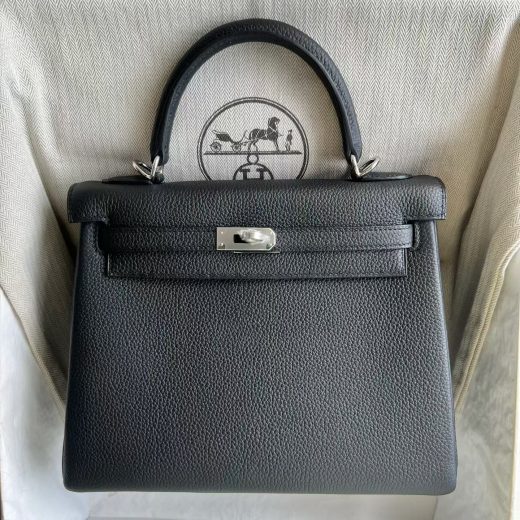 Bag: Kelly (25cm) Stamp: U (2025) Color: Gem Blue Material: Togo Leather Hardware: Brushed Gold Measurements: 25cm Condition: Store Fresh Details: This bag is Store-Fresh. It has never been carried and includes all of the original accessories. Accessories: Raincoat; protective felt; dust bag; clochette; lock & keys Includes: Box, Receipt, Care Card